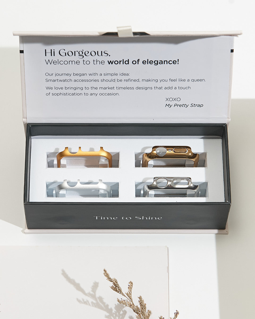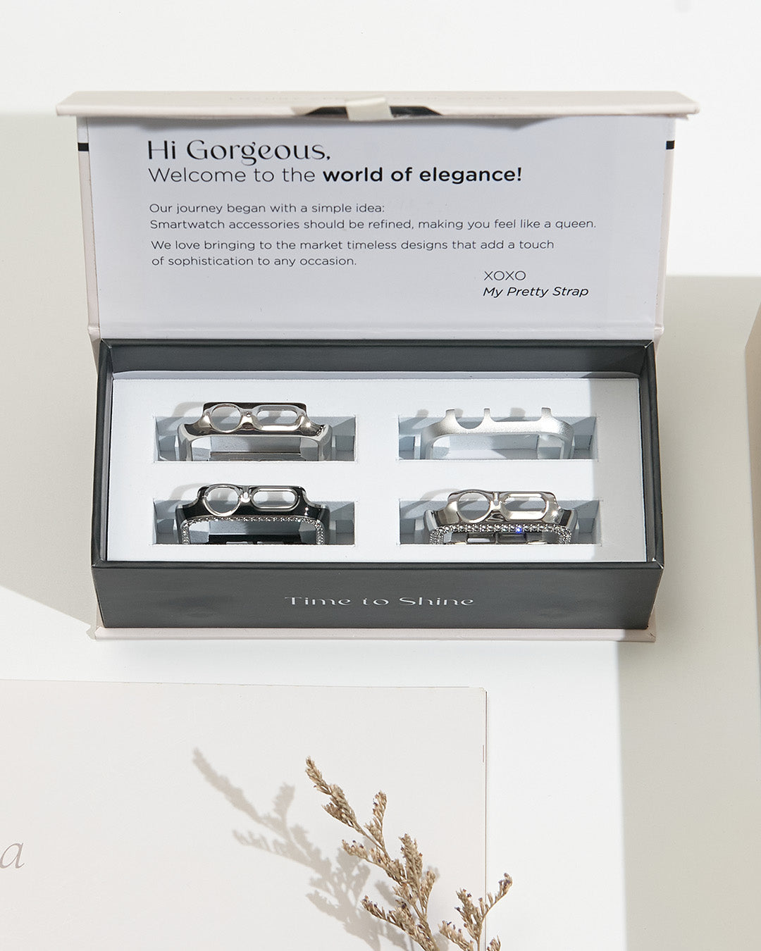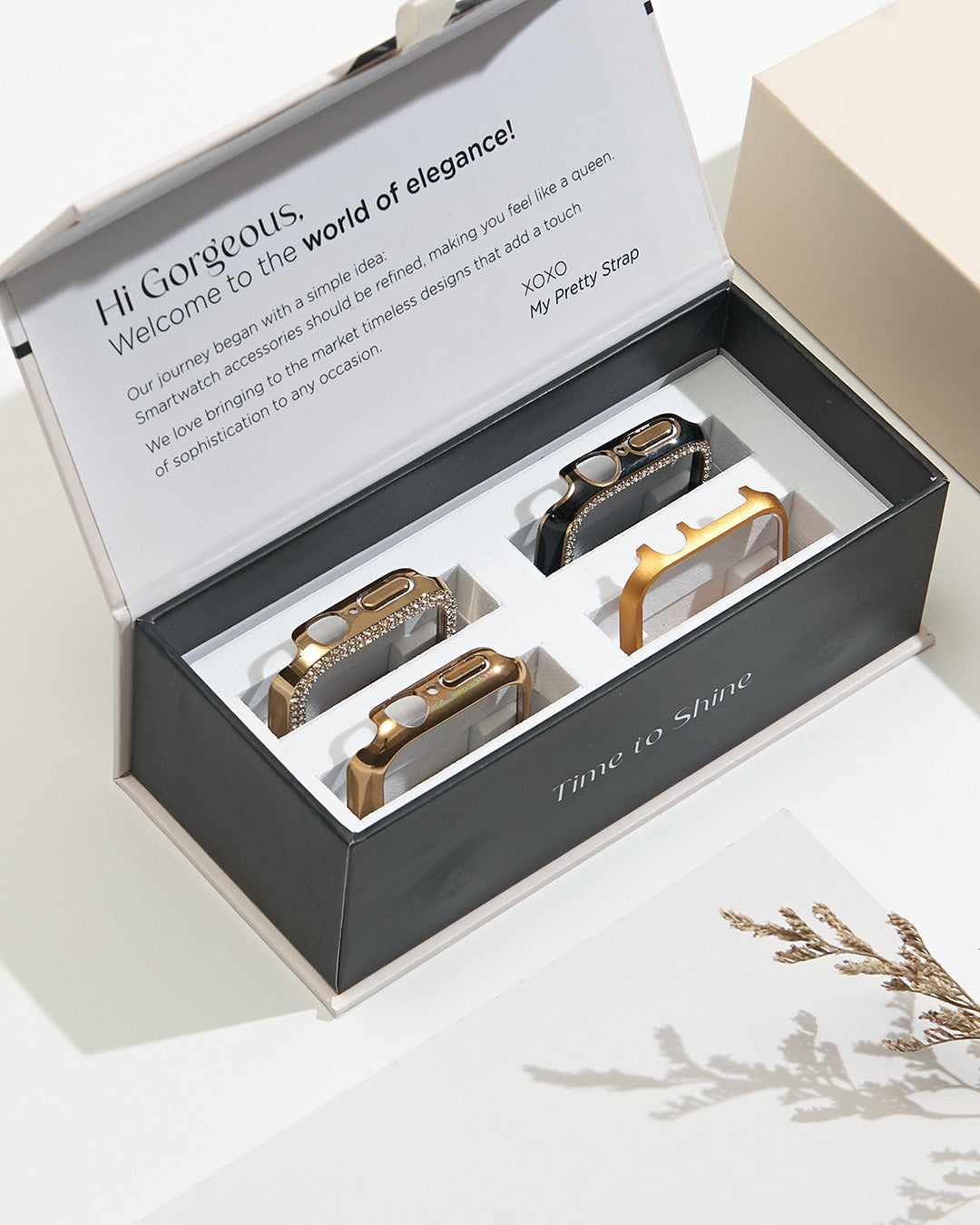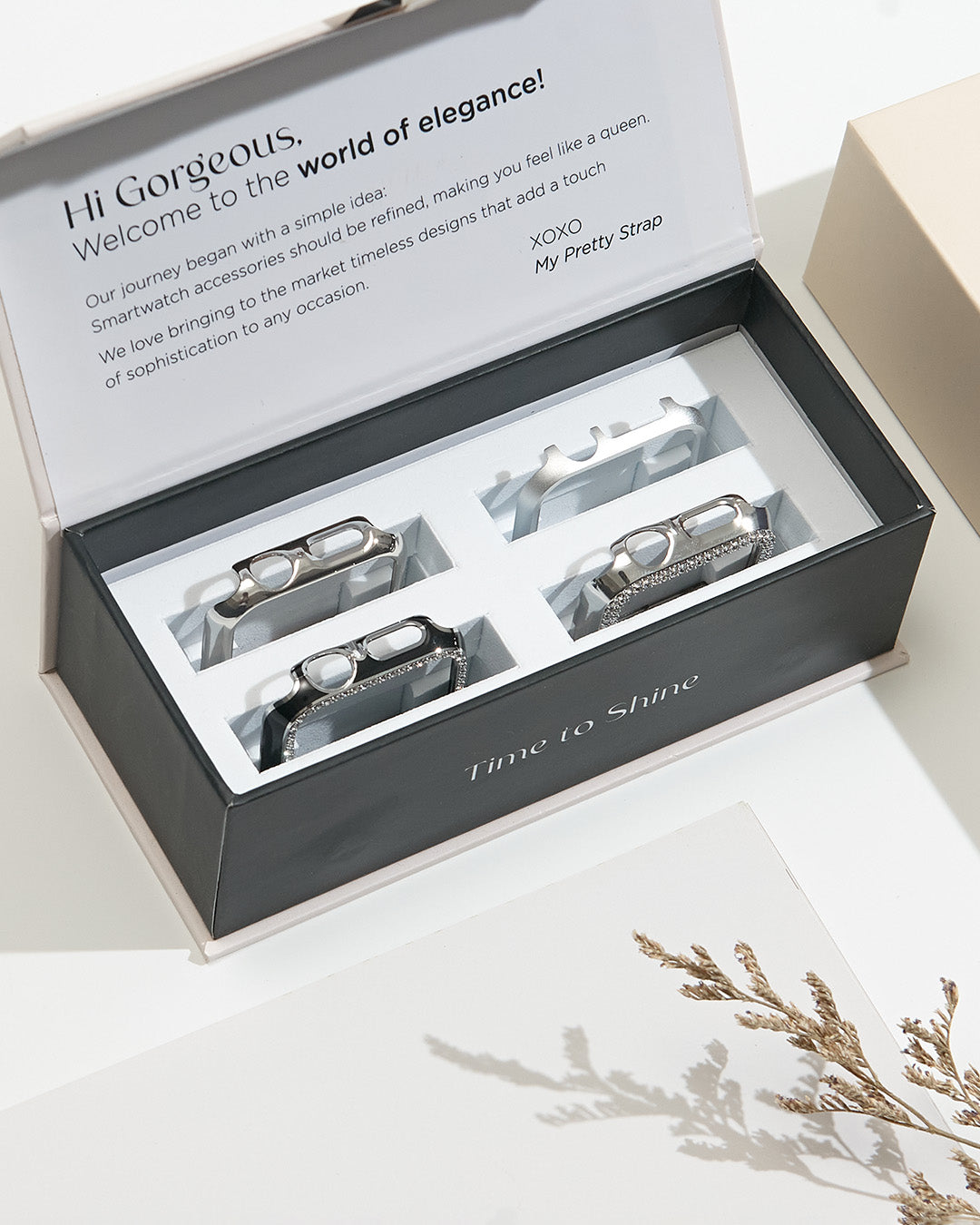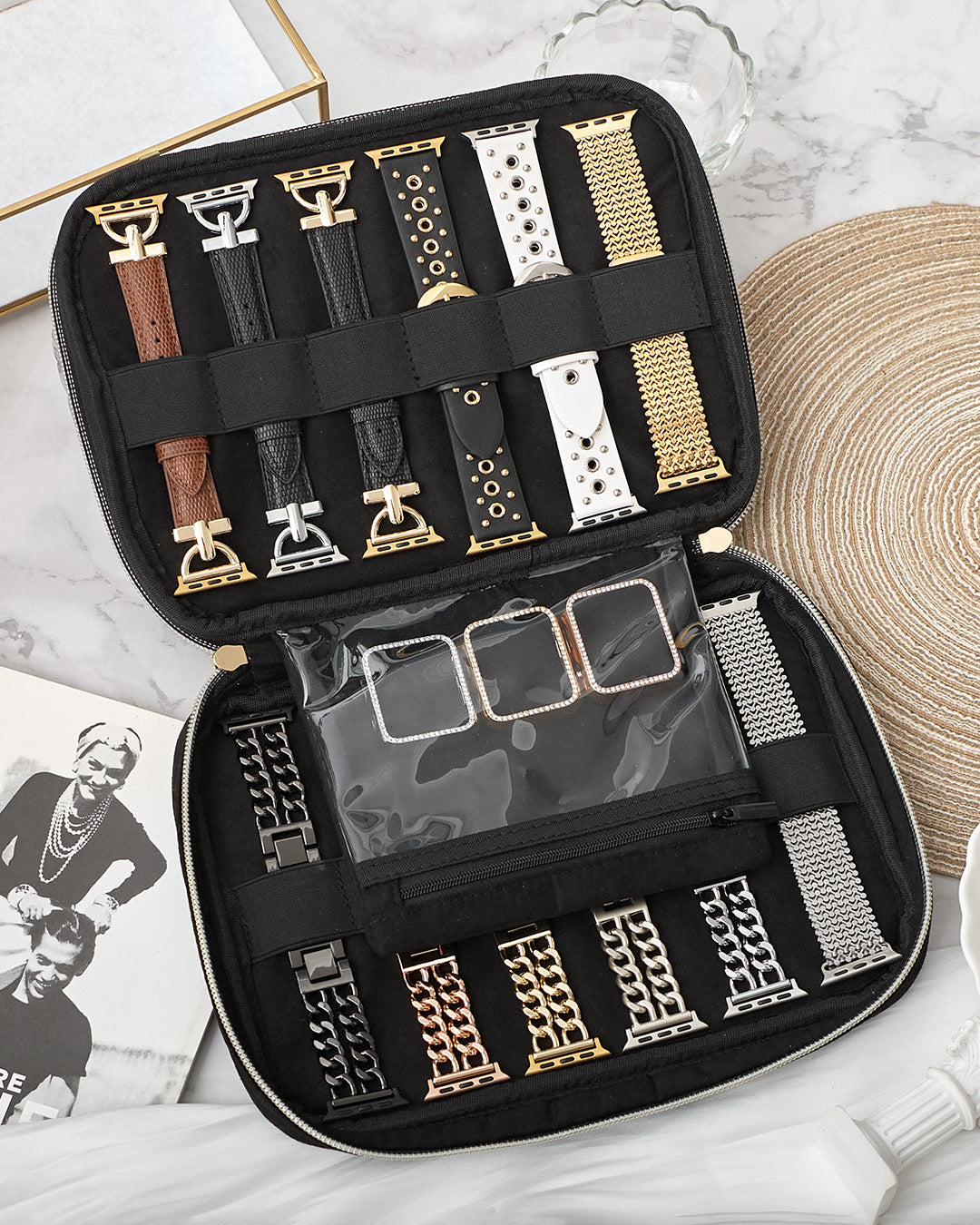 ★★★★★Absolutely LOVE my straps and the cute case that I got!! Shipping did take a bit longer than I expected but worth it!! It’s VERY good quality, nice fit and looks very nice with every occasion