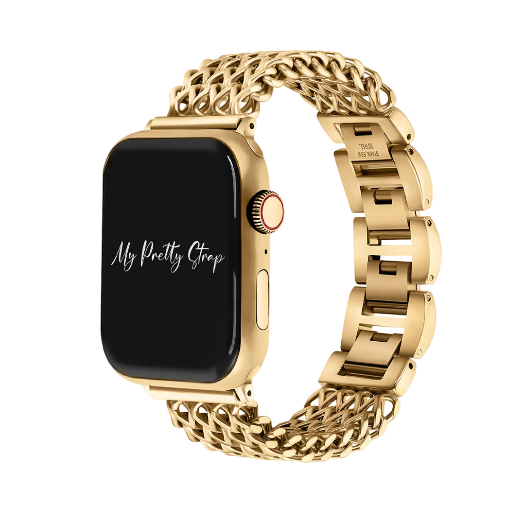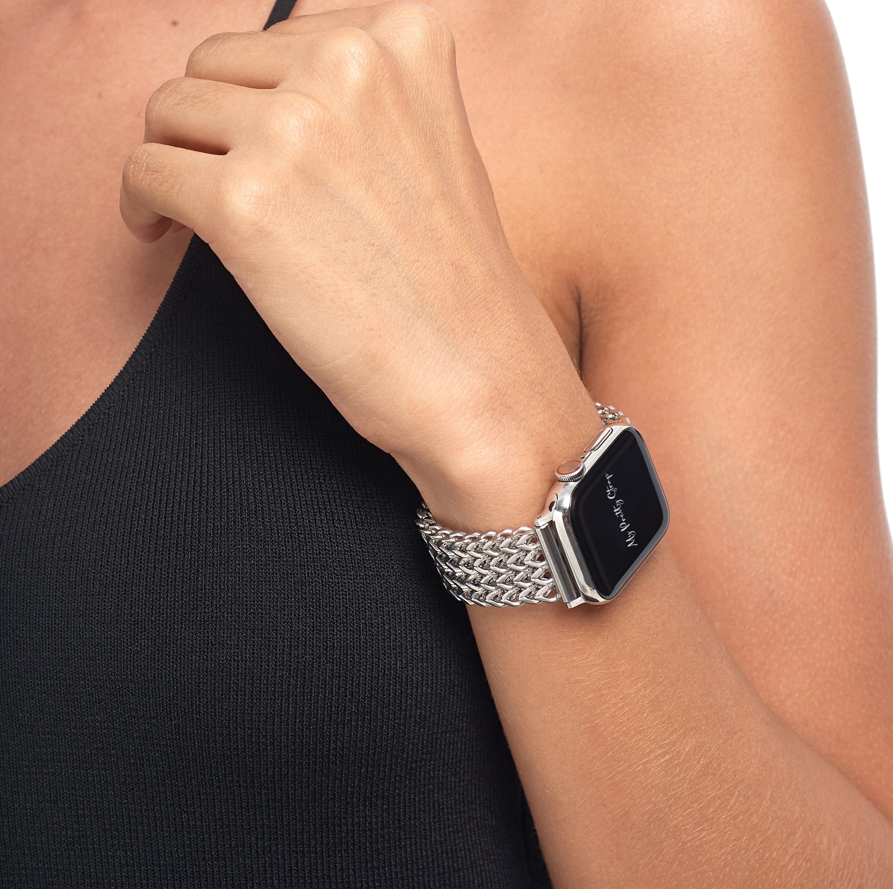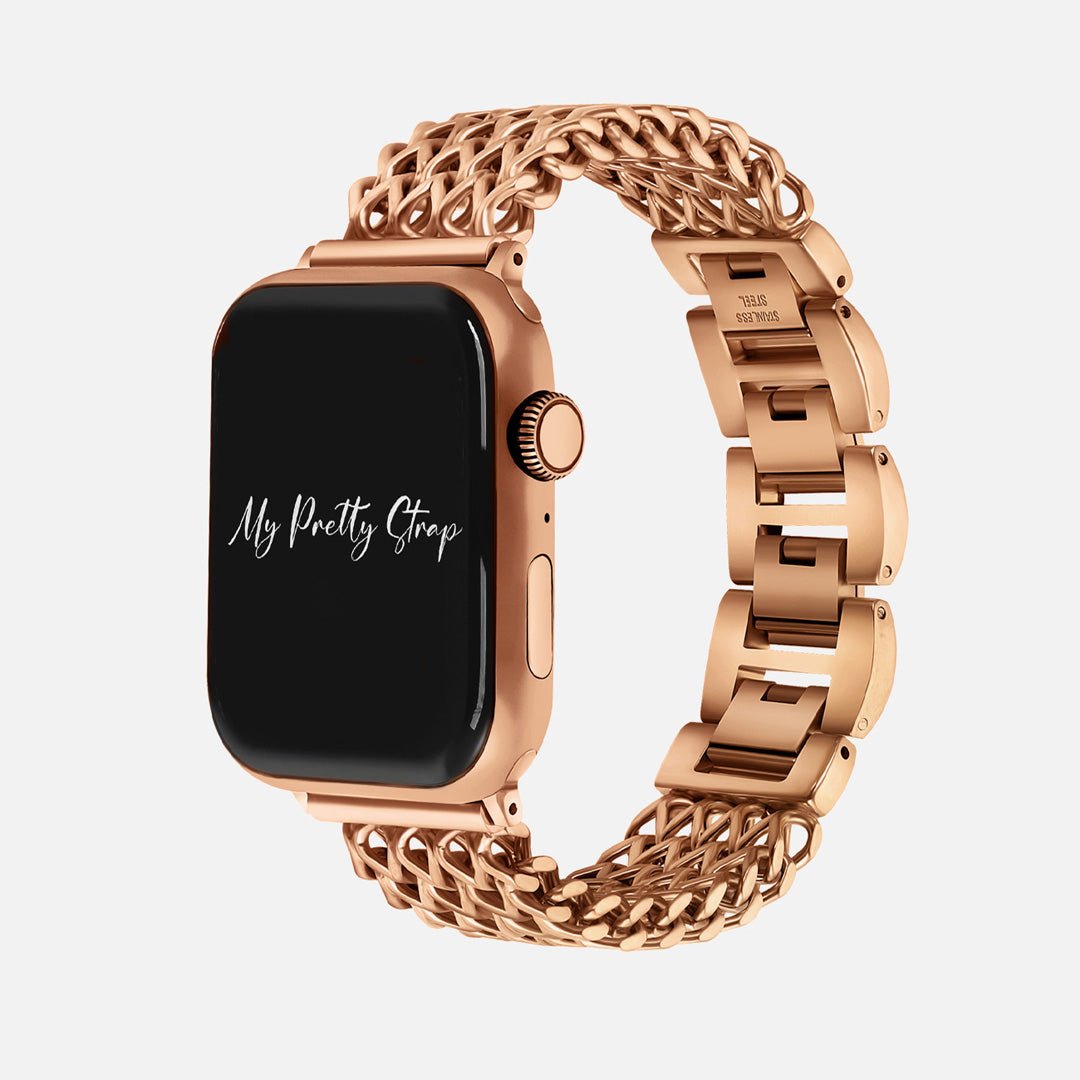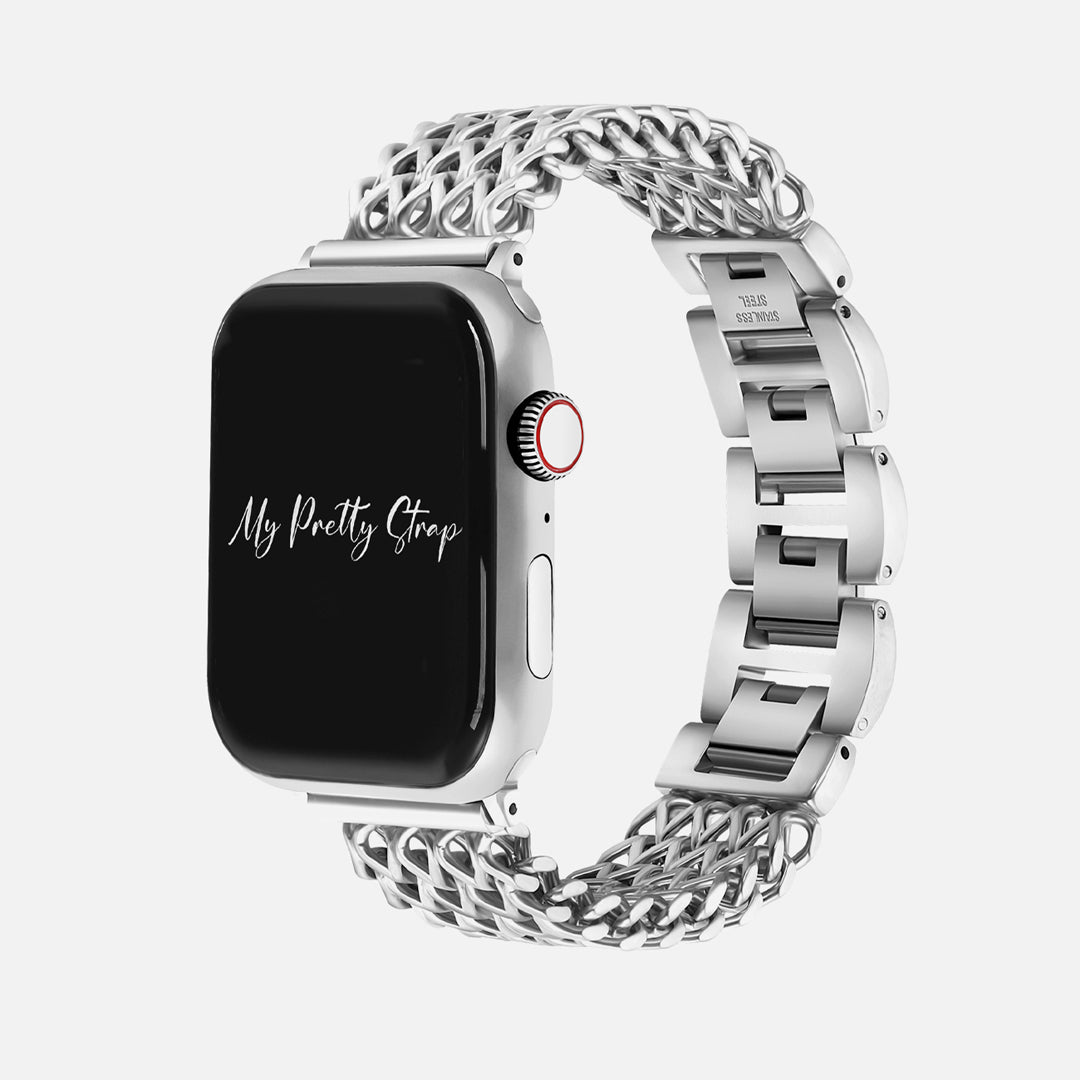 Crafted from premium stainless steel and twisted into elegant woven link chains, this watch band elevates your Apple Watch with its luxurious look & feel. Each watch band comes with its own metal adapter, designed to fit your Apple Watch seamlessly straight from the box.