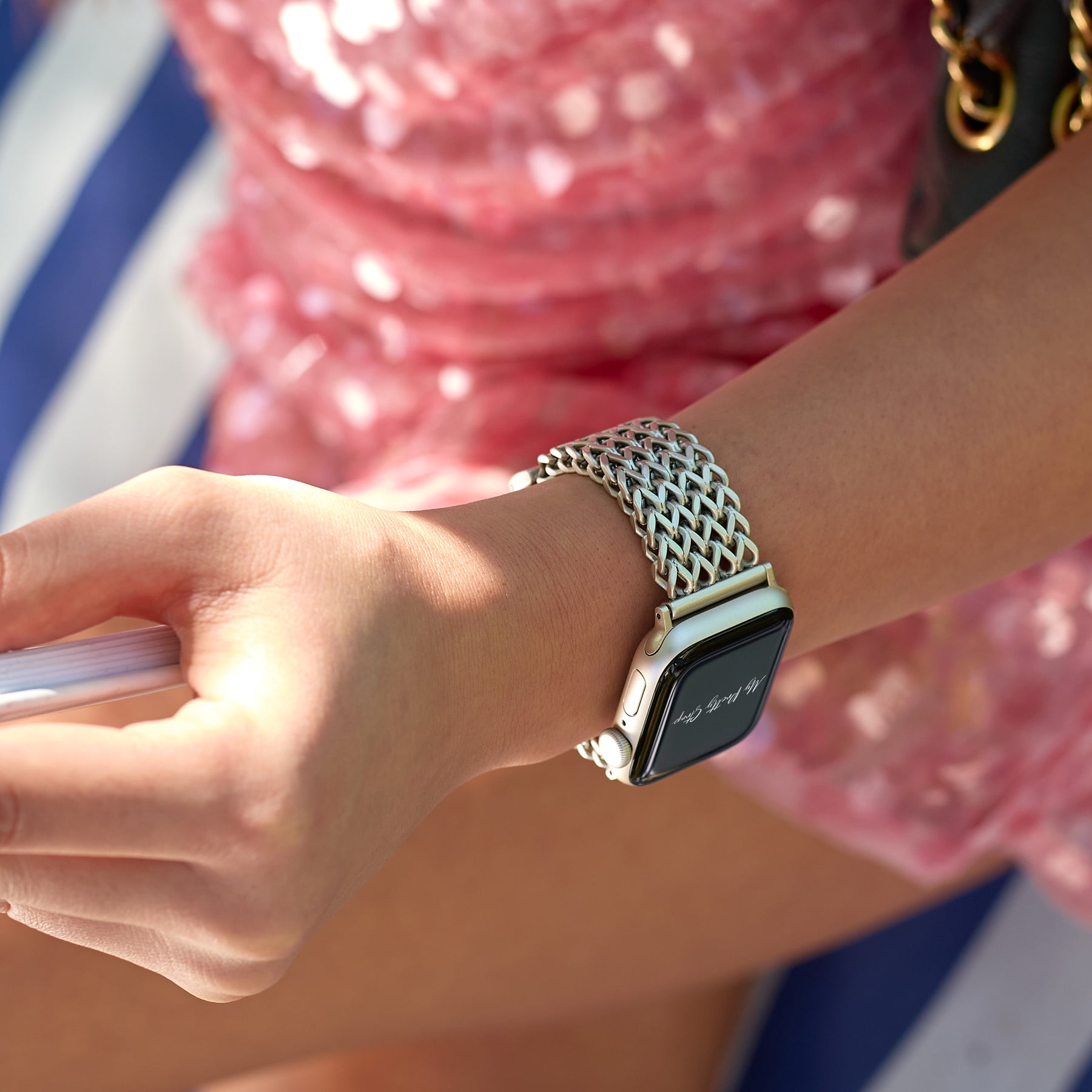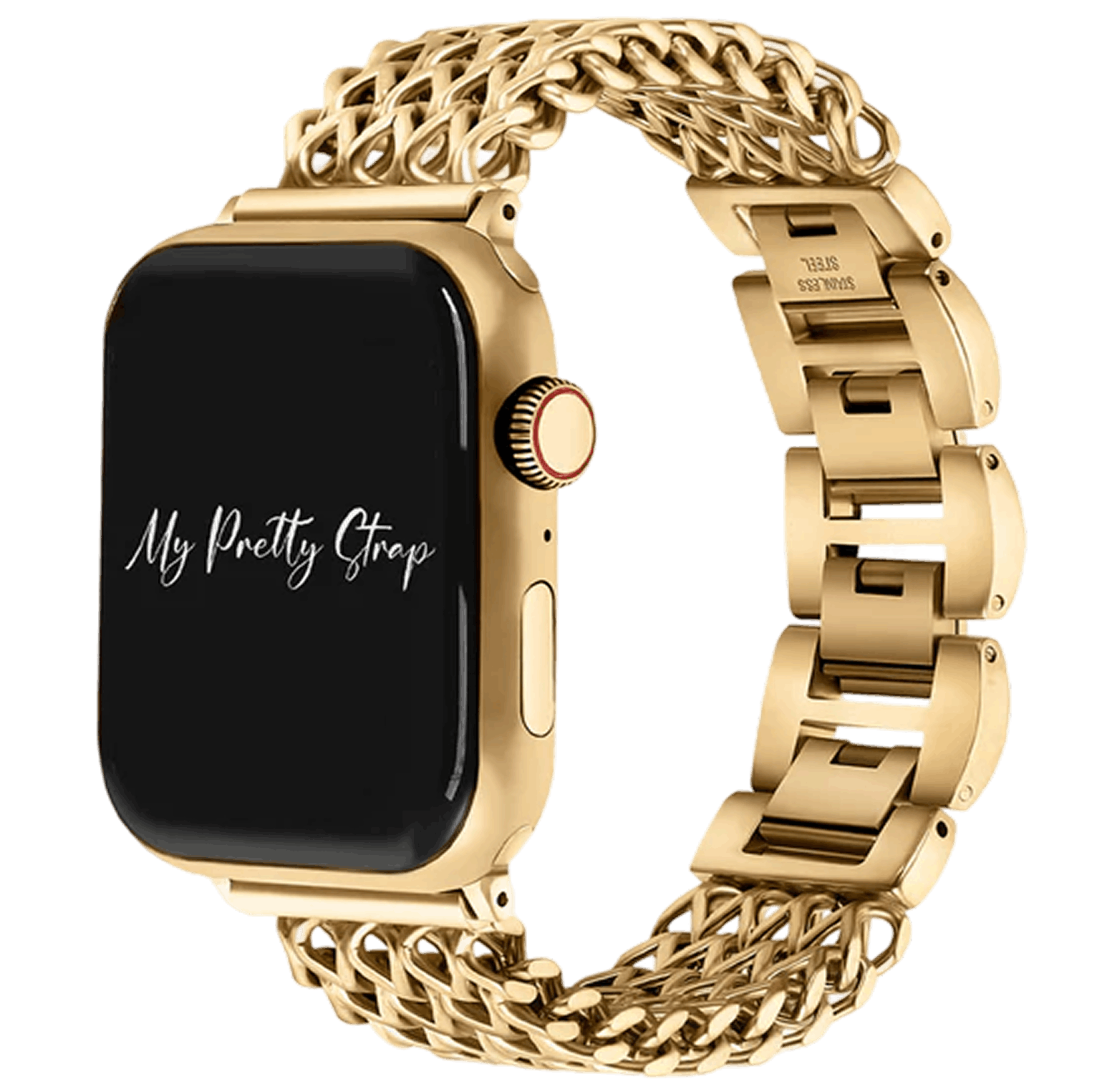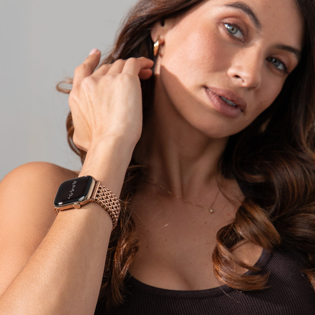 Crafted from premium stainless steel and twisted into elegant woven link chains, this watch band elevates your Apple Watch with its luxurious look & feel. Each watch band comes with its own metal adapter, designed to fit your Apple Watch seamlessly straight from the box.